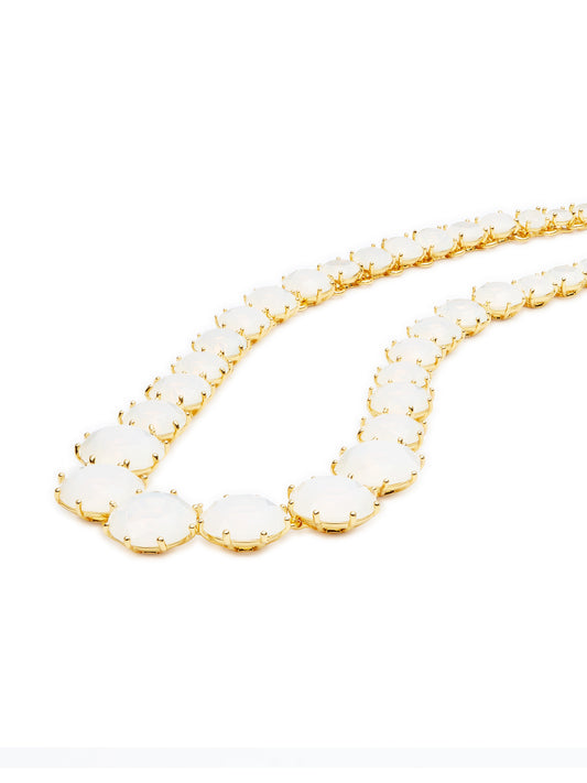 Opalescent White Diamantine Round Stone Long Necklace | auld3511