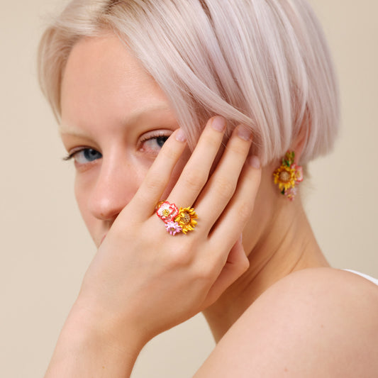 Ballerina, Stone And Enamelled Flower Bouquet Earrings