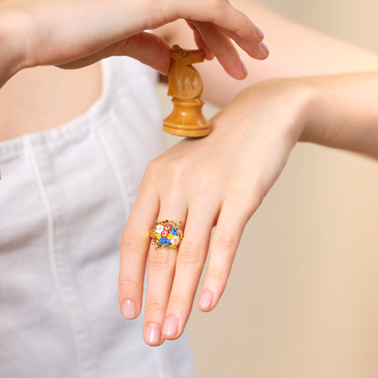 Flower Bouquet And Ceramic Bead Statement Necklace