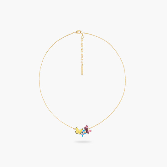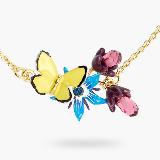 Blue Flower And Yellow Butterfly Pendant Necklace