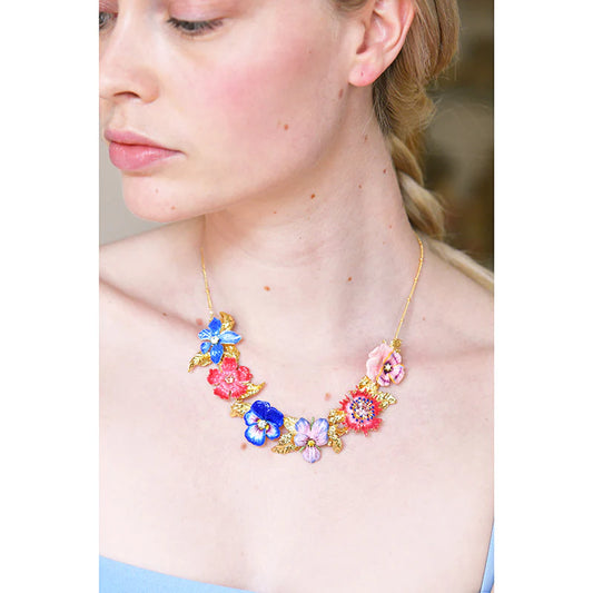 Blue, White And Red Flowers, Clementine And Butterfly Charm Necklace
