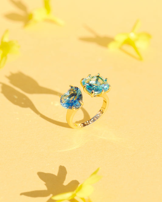 La Diamantine Acqua Azzurra You And Me Heart And Square Stone Rings