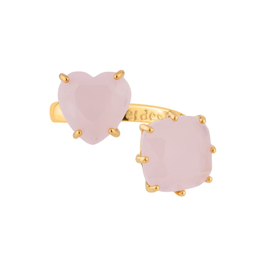 Pink Heart And Square Stones La Diamantine Adjustable You And I Rings