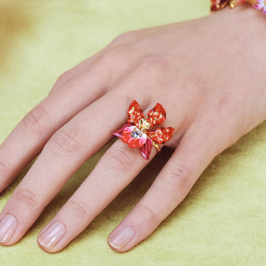 Exotic Orchid And Faceted Crystal Cocktail Ring