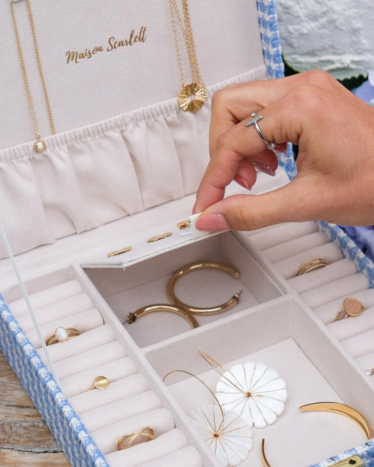 Anne Houndstooth Jewelry Box Sky Blue