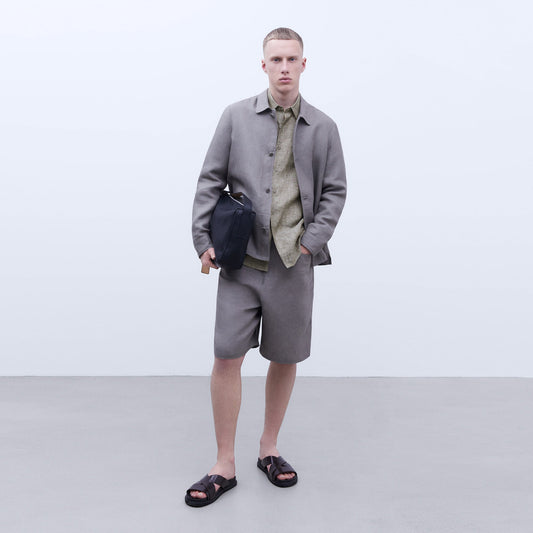 European Linen Lapel Collar Shirt