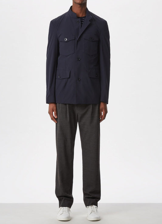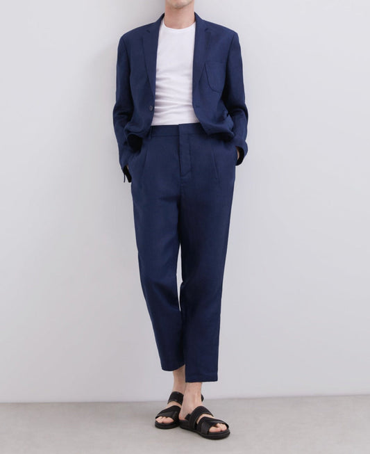 Navy Blue Lyocell And Cotton Blazer Jacket