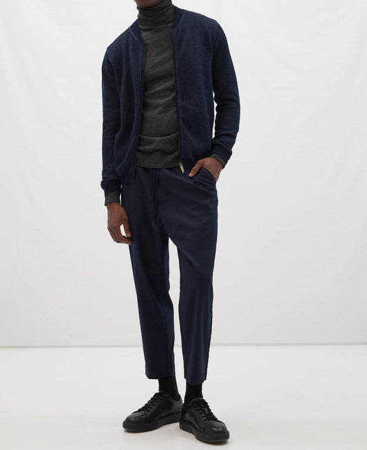 Navy Blue Lyocell And Cotton Blazer Jacket