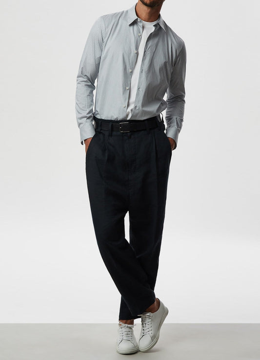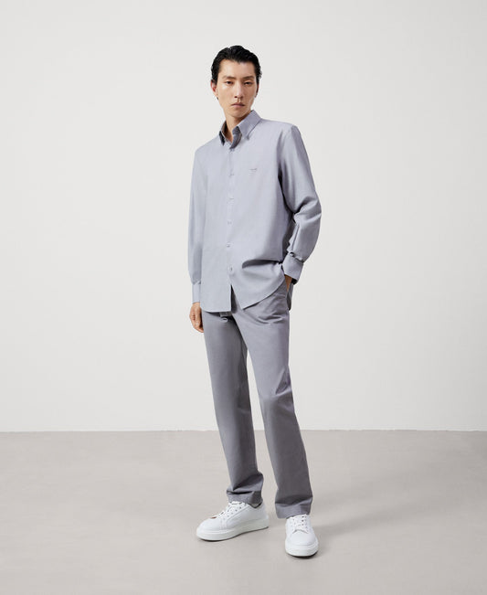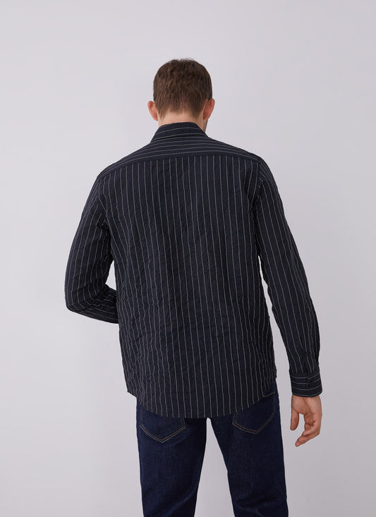 Grey Stripe Slim Fit Cotton Shirt With Stripe