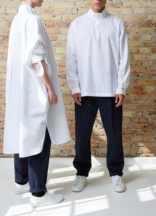 White/Blue Stripe Mandarin Collar Sailor Stripe Shirt