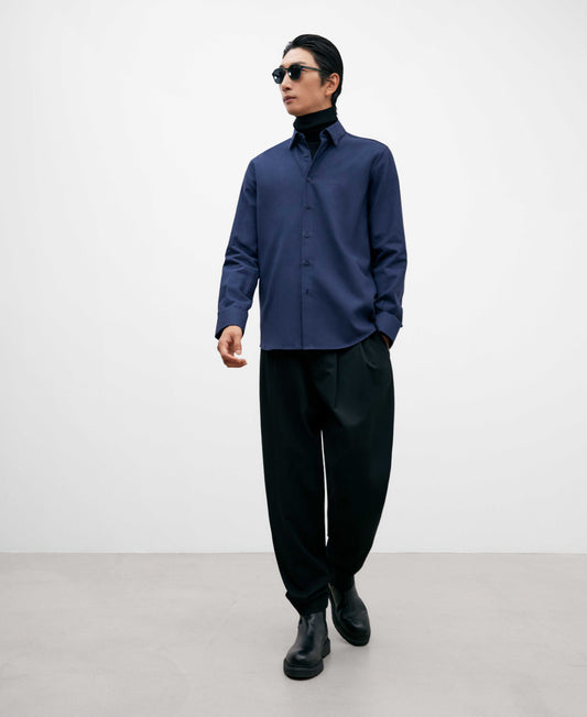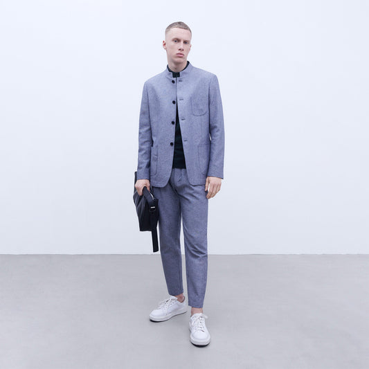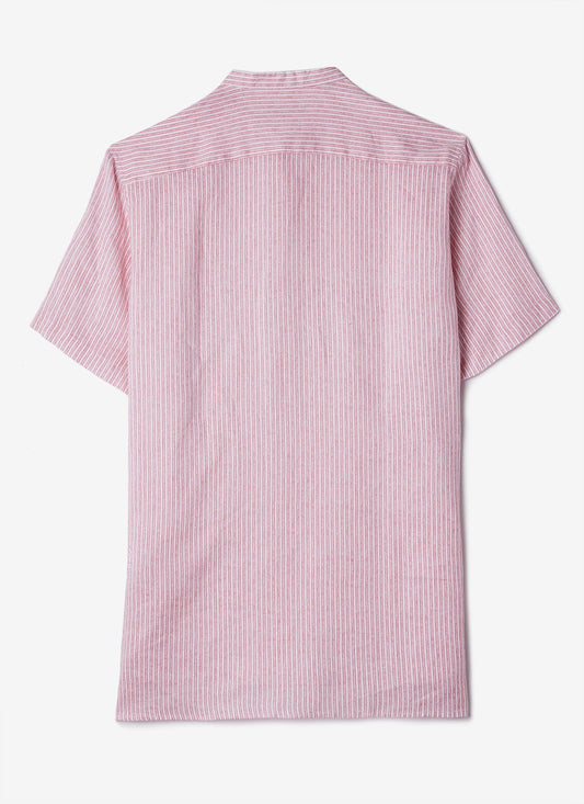 Pale Pink Long-Sleeved Mandarin Collar Shirt