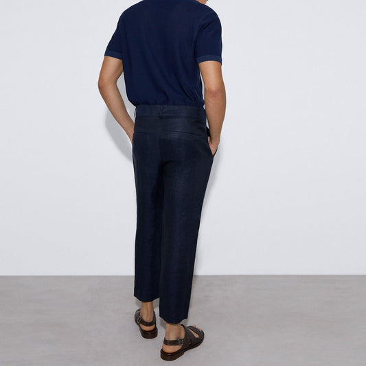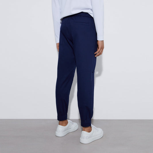 Navy Blue Poplin Cotton & Lyocell Trousers