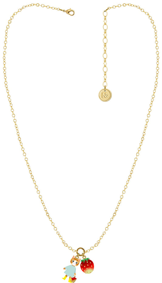 Pendant Necklace With London Red Postbox, Card, Grey Cat And Green Jumper | AWWI3041
