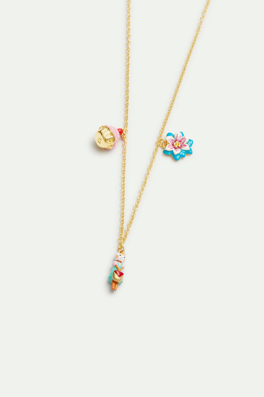 Pendant Necklace With Pink Gift Box, Red Flower And Orange Bow | AWWI3031