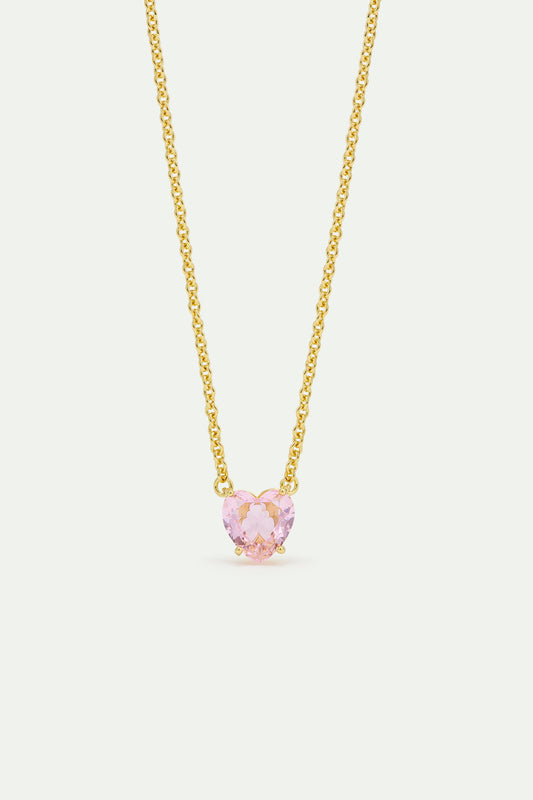 Light Pink Diamantine Fine Heart-Shaped Stone Necklace