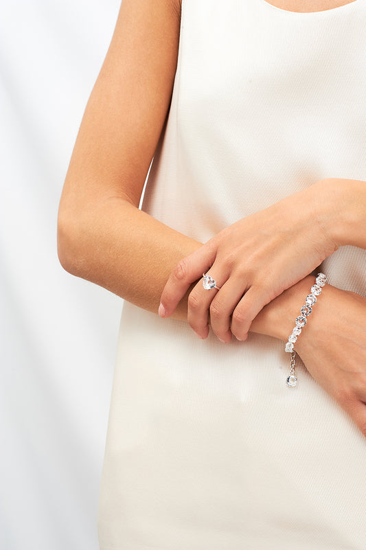 Silver One Row La Diamantine Luxurious Bracelet | AILD2523