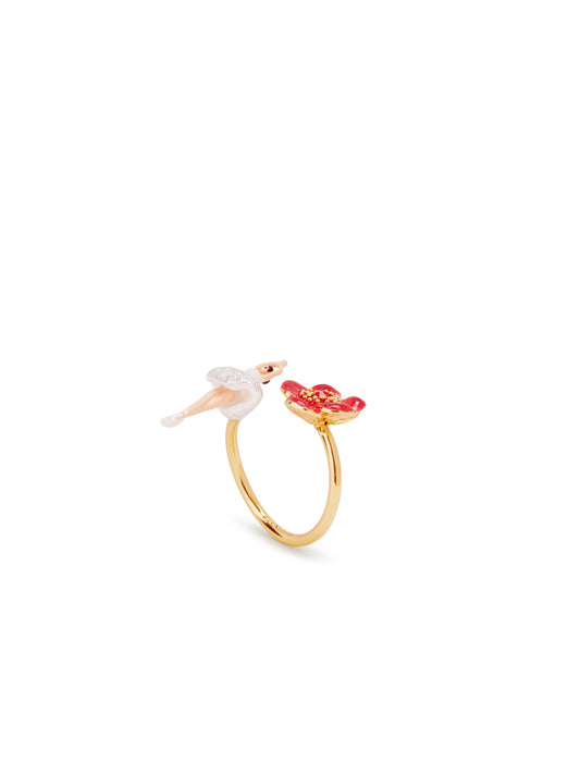 Ballerina And Red Flower Adjustable Ring | aumdd6011