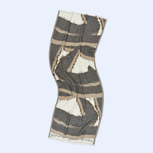 Light Grey Printed Linen & Cotton Mix Shawl / Scarf
