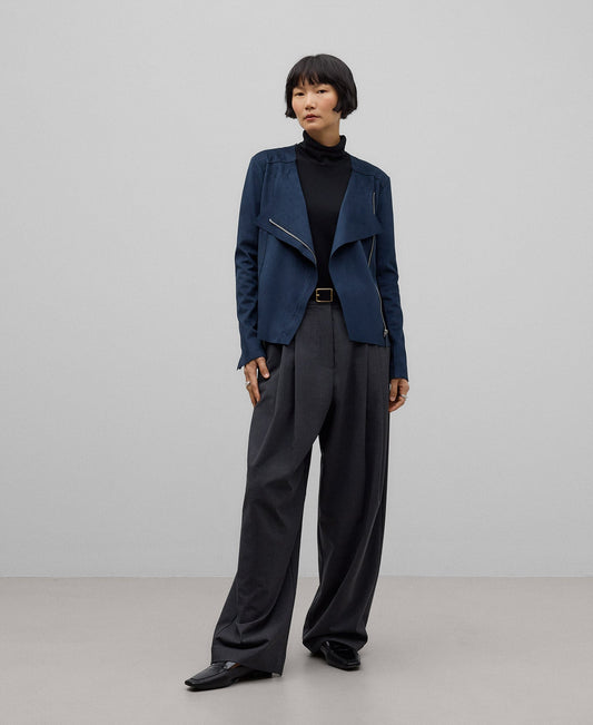 Fitted biker jacket woman in navy blue