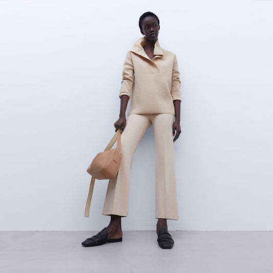 Taupe Merino Wool High Neck Top For Women