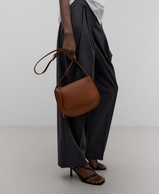 Leather small crossbody woman in dark buff