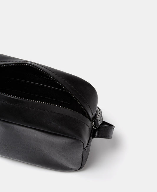 Black Crackled Glossy Leather Crossbody Bag