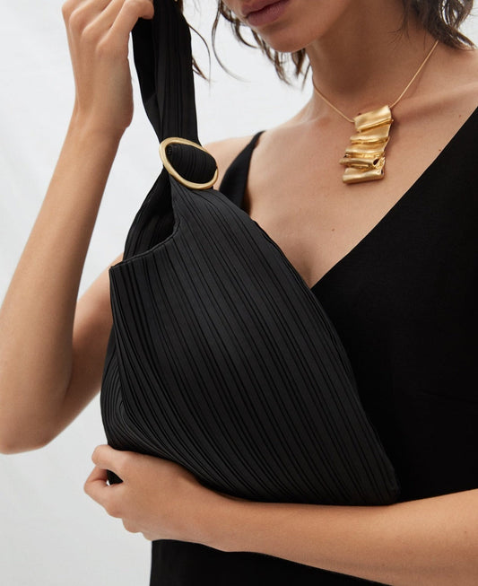 Black Cocktail Bag In Pleated Fabric
