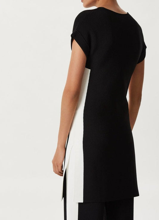 Black/Ecru Bicolour Long Stretch Knit Caftan