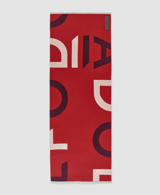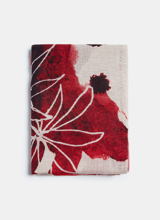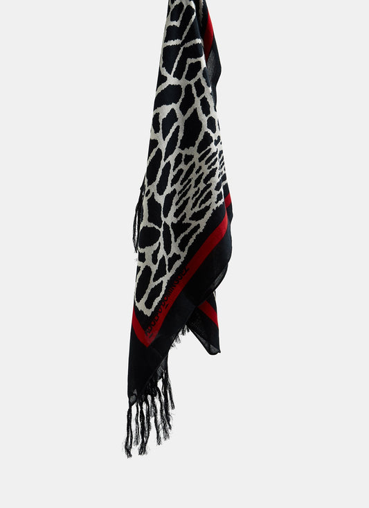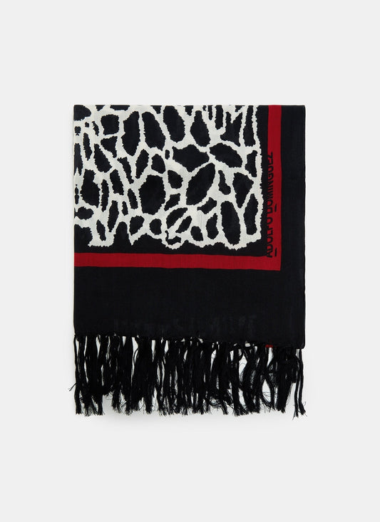 Black & Red Cotton Shawl / Scarf With Multiline Print