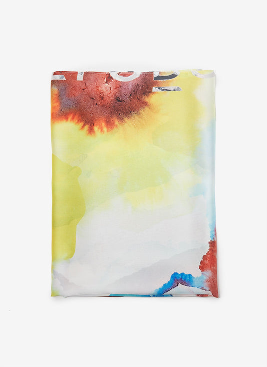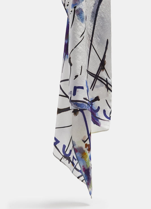 Turquoise Abstract Print Merino Wool Shawl / Scarf