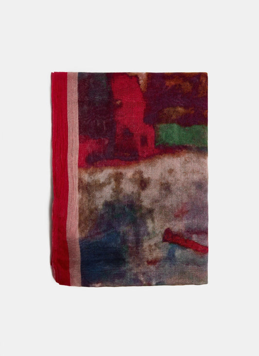 Printed Linen & Cotton Shawl / Scarf in Brown
