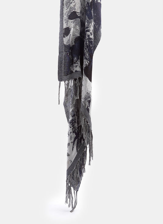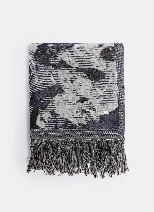 Light Grey Printed Linen & Cotton Mix Shawl / Scarf