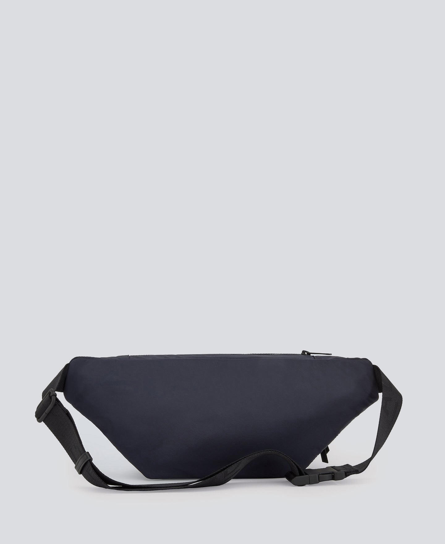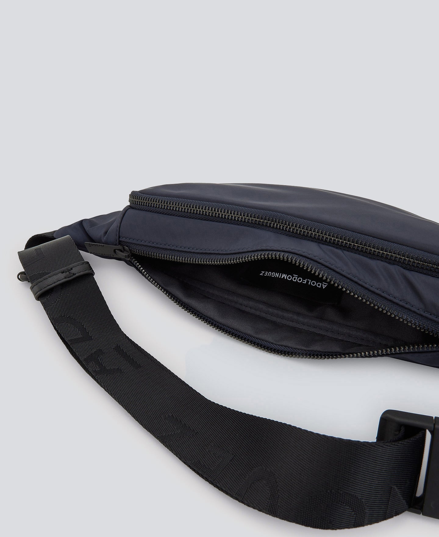 Navy Blue Fanny Pack Man. Zipper Closure. Front Zippered Pocket. Logotyped Adjustable Strap.