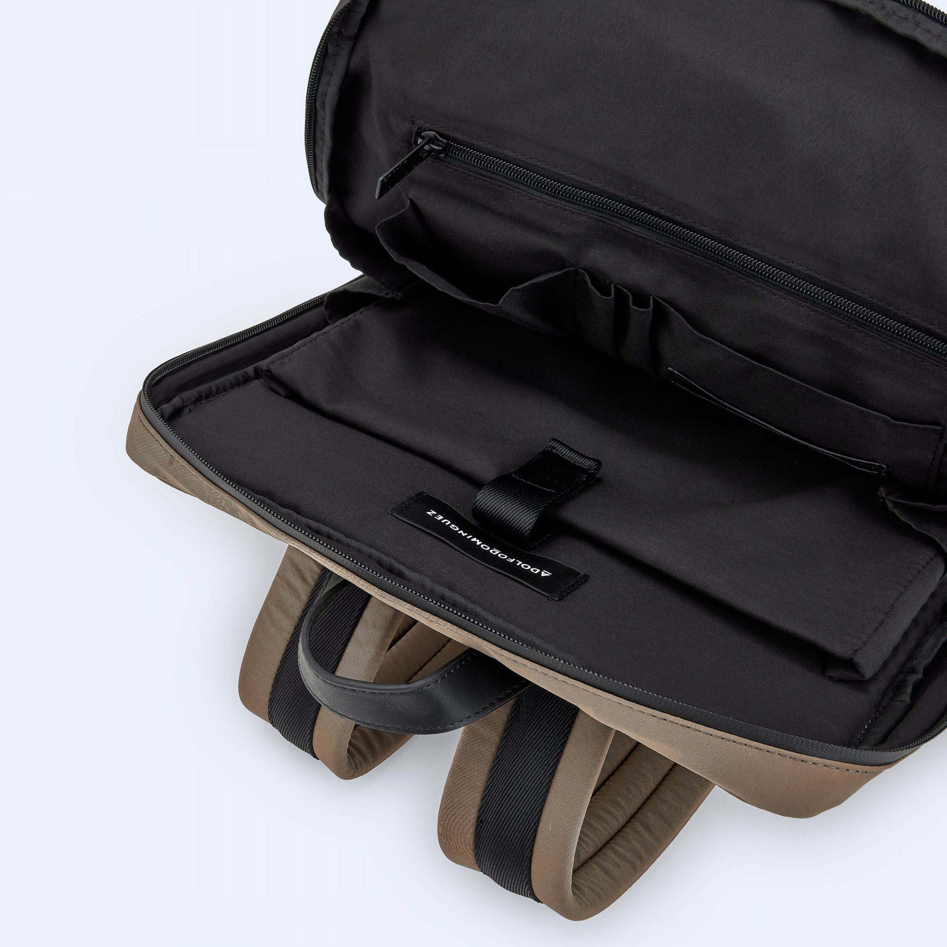 Introducing our latest addition, the Adolfo Dominguez bag. This stylish bag features one spacious compartment, perfect for carrying all your essentials. The double slider heat-sealed zip closure ensures that your belongings are secure. The front patch pocket adds a touch of convenience, allowing you to easily access your most-used items. The bag is adorned with our engraved logo, showcasing the brand's attention to detail. The recycled nylon strap adds a sustainable element to the design, making it a must-have for eco-conscious fashionistas.