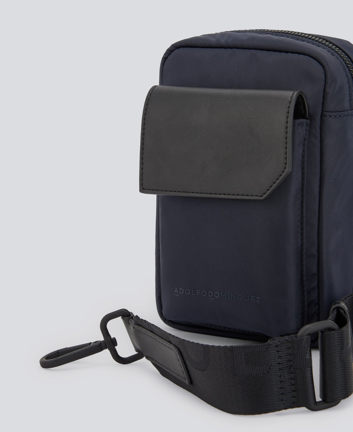 Navy Blue Crossbody Man. Zipper Closure. Frontral Pocket With Fake Leather Flap. Logotyped Adjustable Strap.