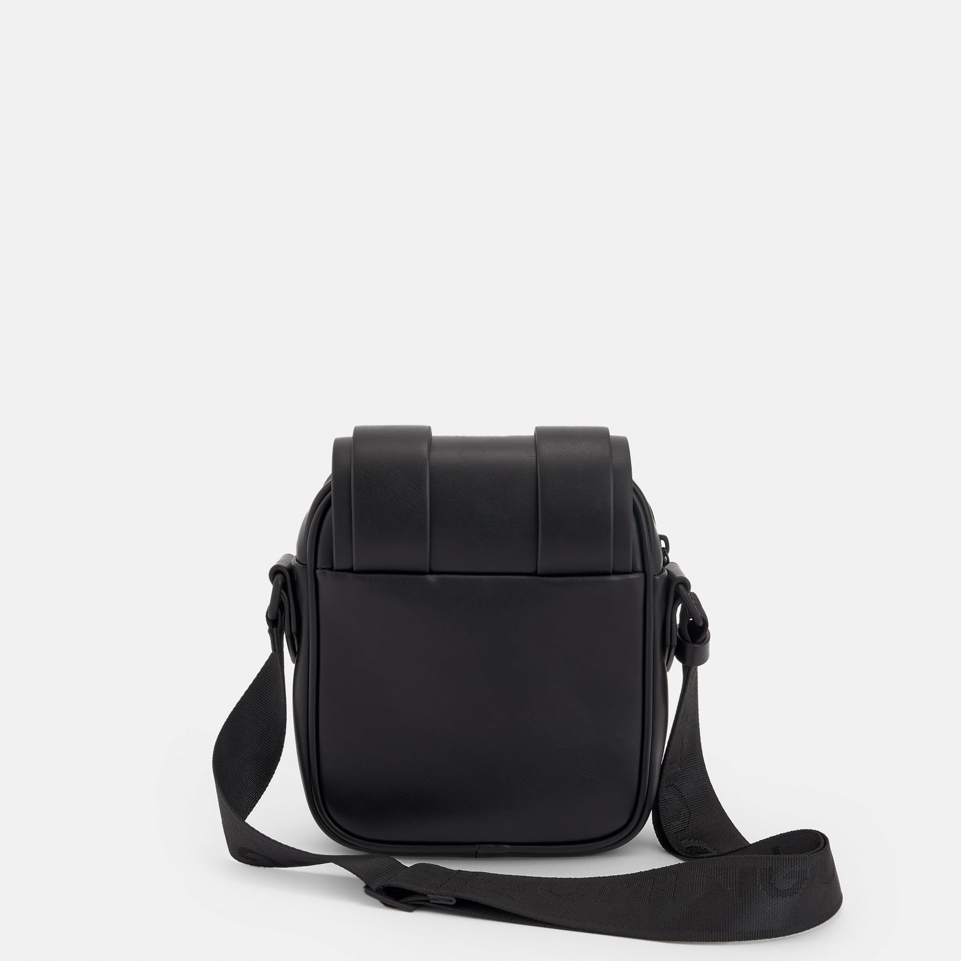 Small shoulder bag in recycled polyurethane. It has a main compartment with mountain-inspired metal buckle closure. Adjustable shoulder strap. Organic cotton lining.