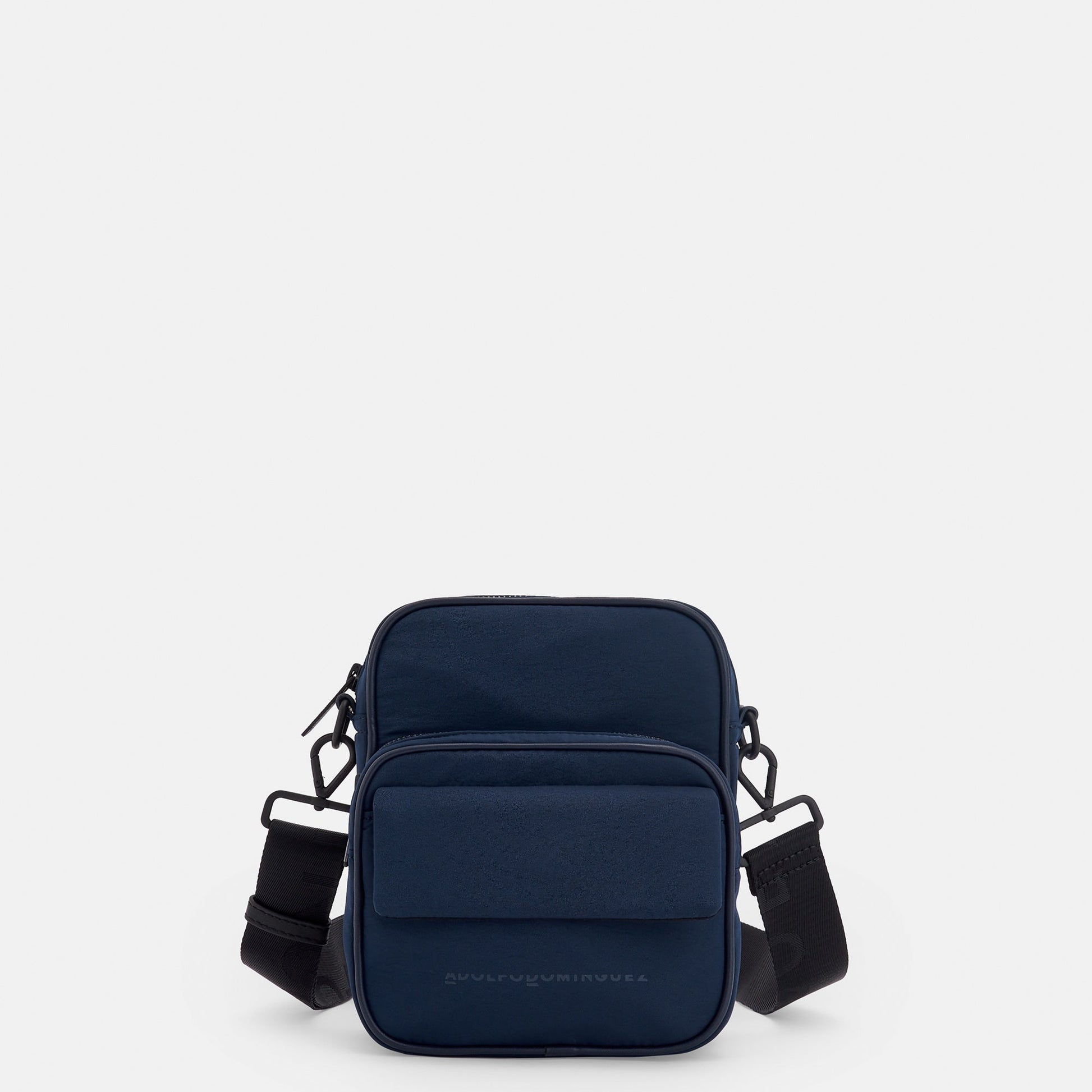 Small shoulder bag in recycled polyester. Recycled nylon grosgrain sling strap. Features one zippered compartment and a second front pocket with magnet closure.recycled polyester