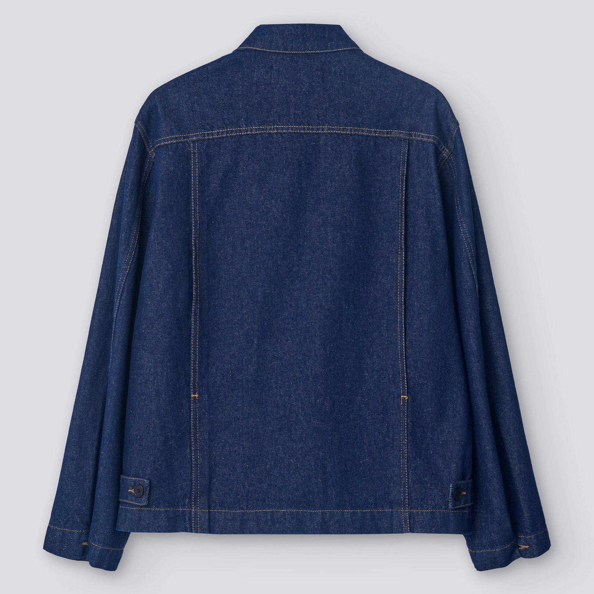 Blue Cotton Denim Jacket Man. Lapel Collar. Button Closure. Long Sleeves With Dropped Shoulder. Front Pockets With Pleats And Button Closure. Yoke With Darts At The Lower Back. Adjustable Loops At The Hem. Boxy Cut.