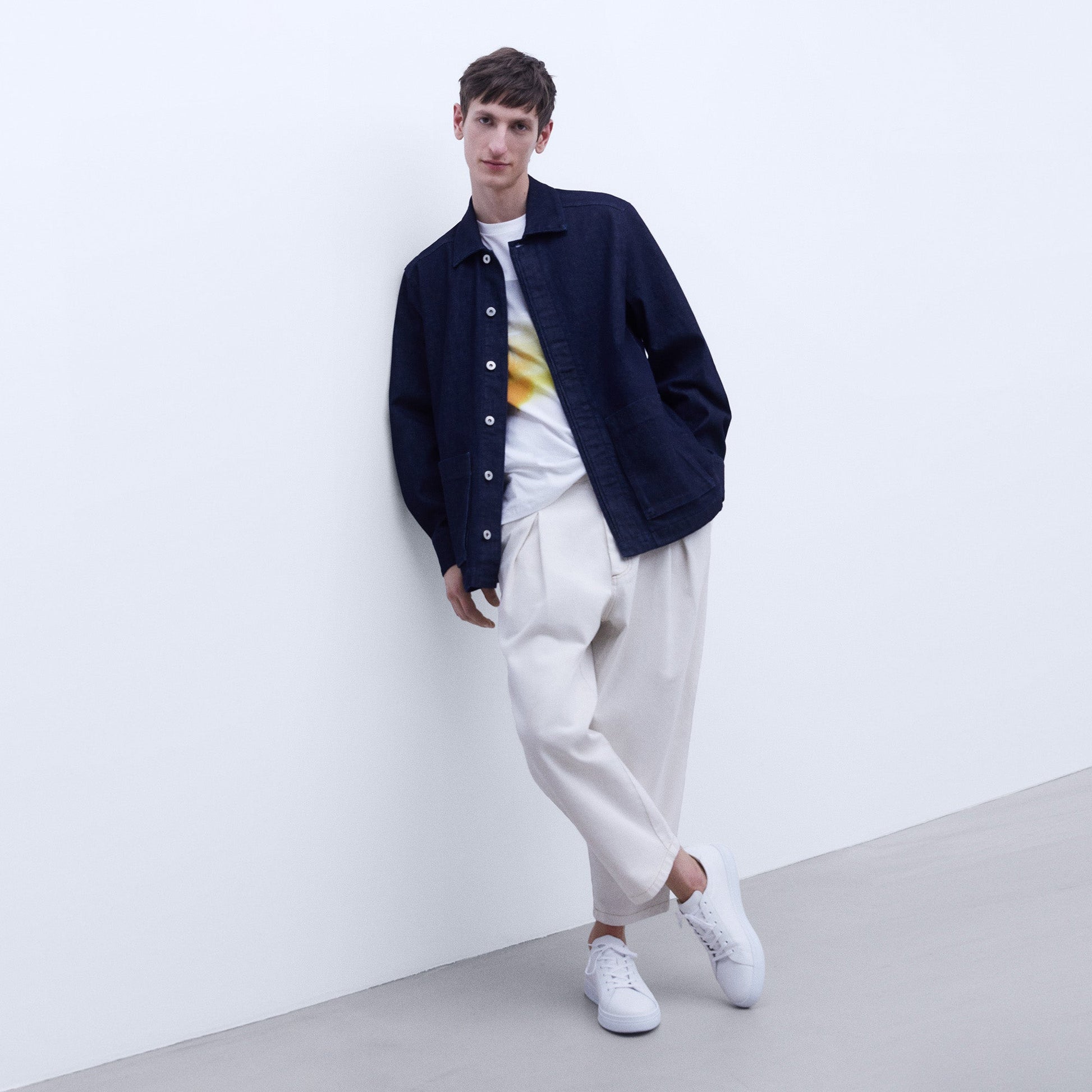 Lapel collar. Plastron front pockets. Double front flap with concealed button fastening. Button and buttonhole fastening detail on cuffs.