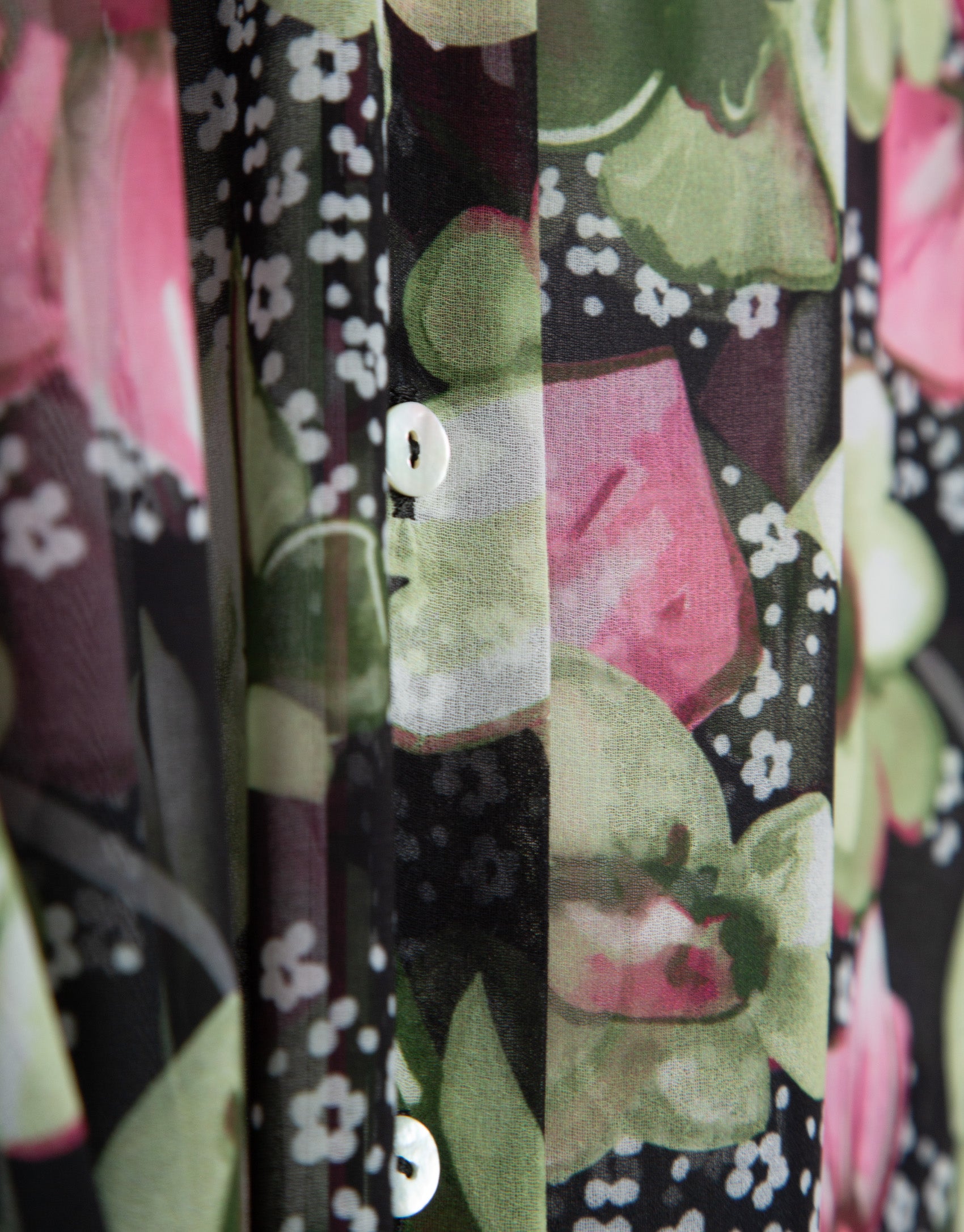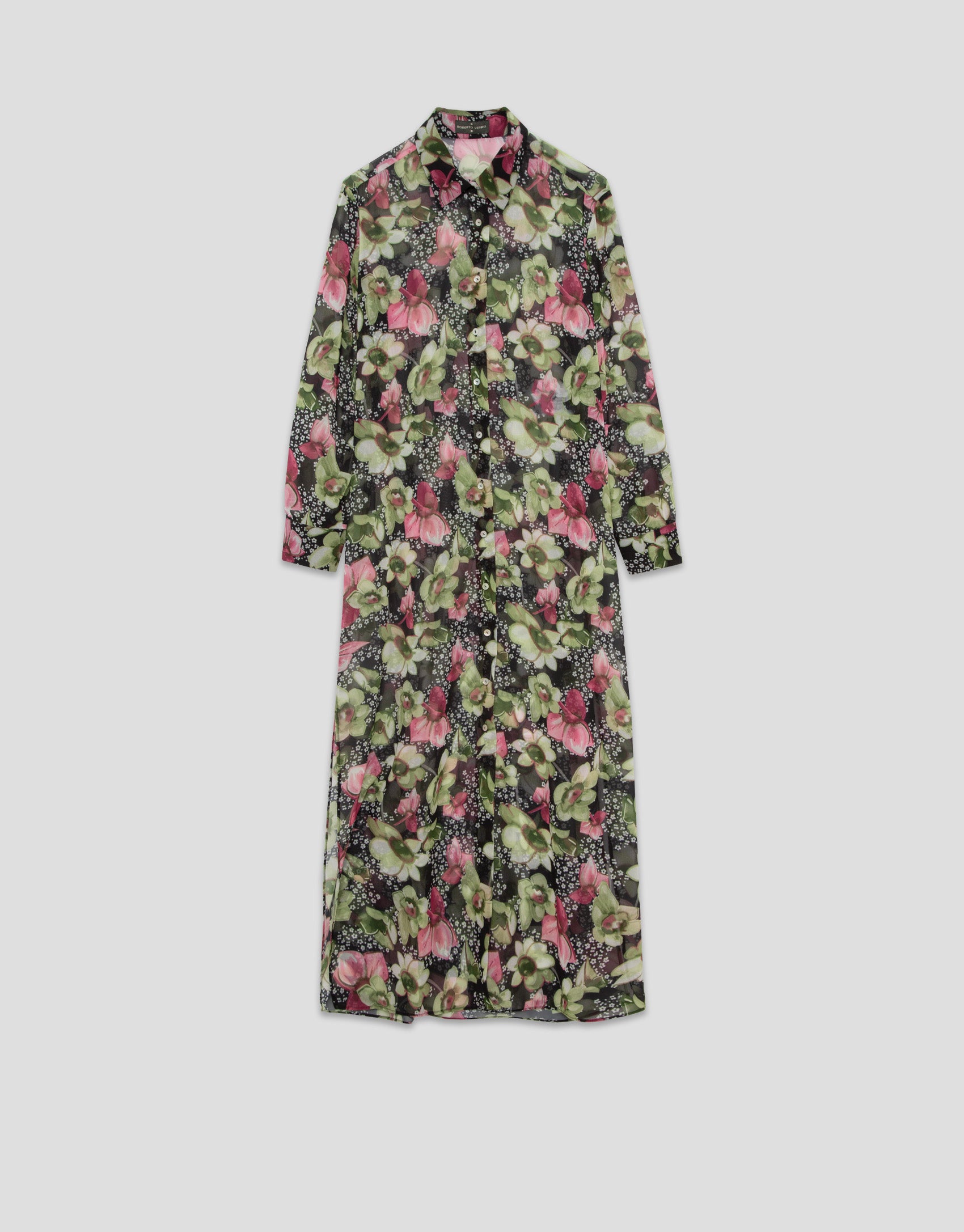 Step out in confidence with our sophisticated Green floral print crepe georgette long sleeve midi shirt dress. Made in Portugal with meticulous craftsmanship, this dress is designed to make a lasting impression.