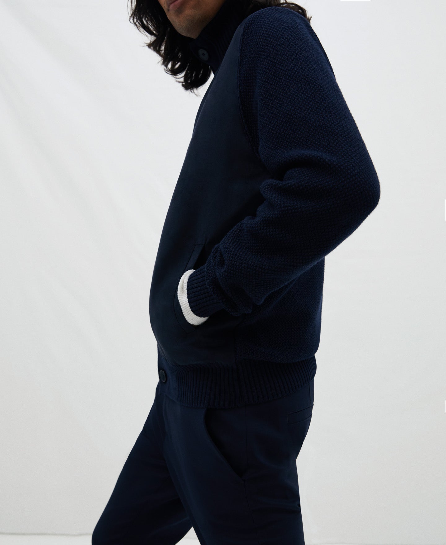 Classic or avant-garde, depending on how you combine it. The cardigan is one of our favorite garments. So is the varsity collar. This season we have revised it with vegan suede on the front and the rest in soft 100% cotton knit.Vegan Suede &Cotton