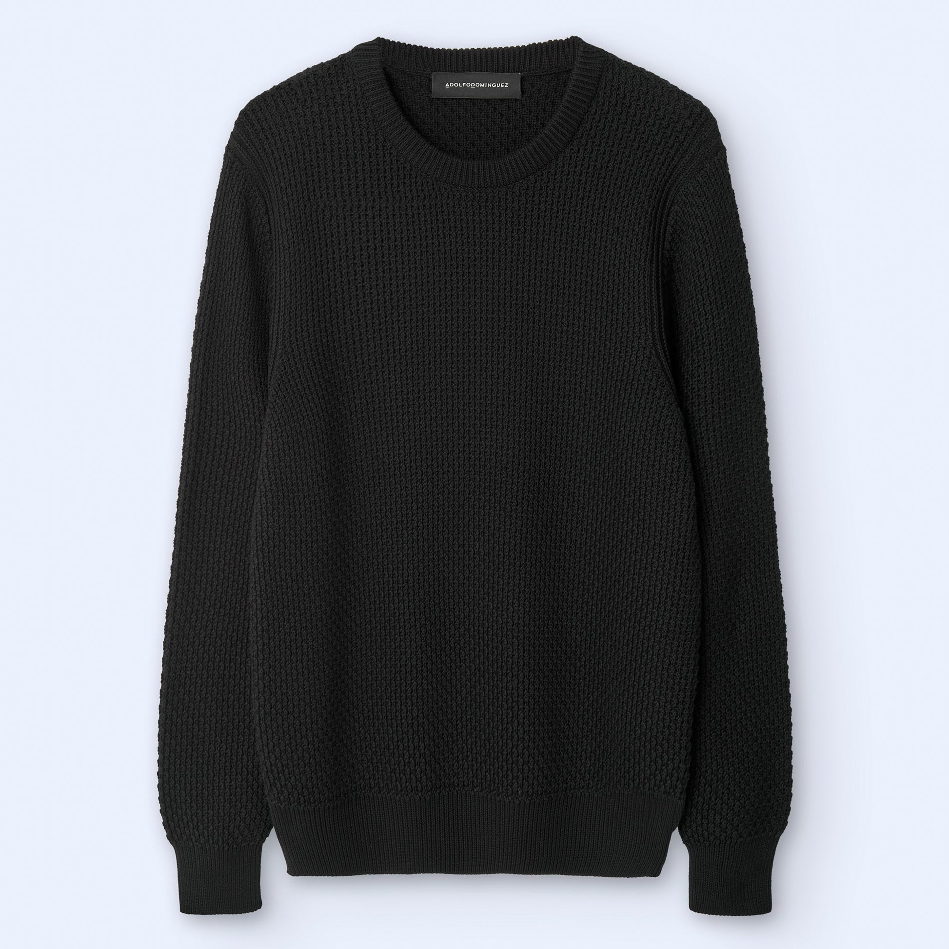 Black Cotton Crew Neck Sweater