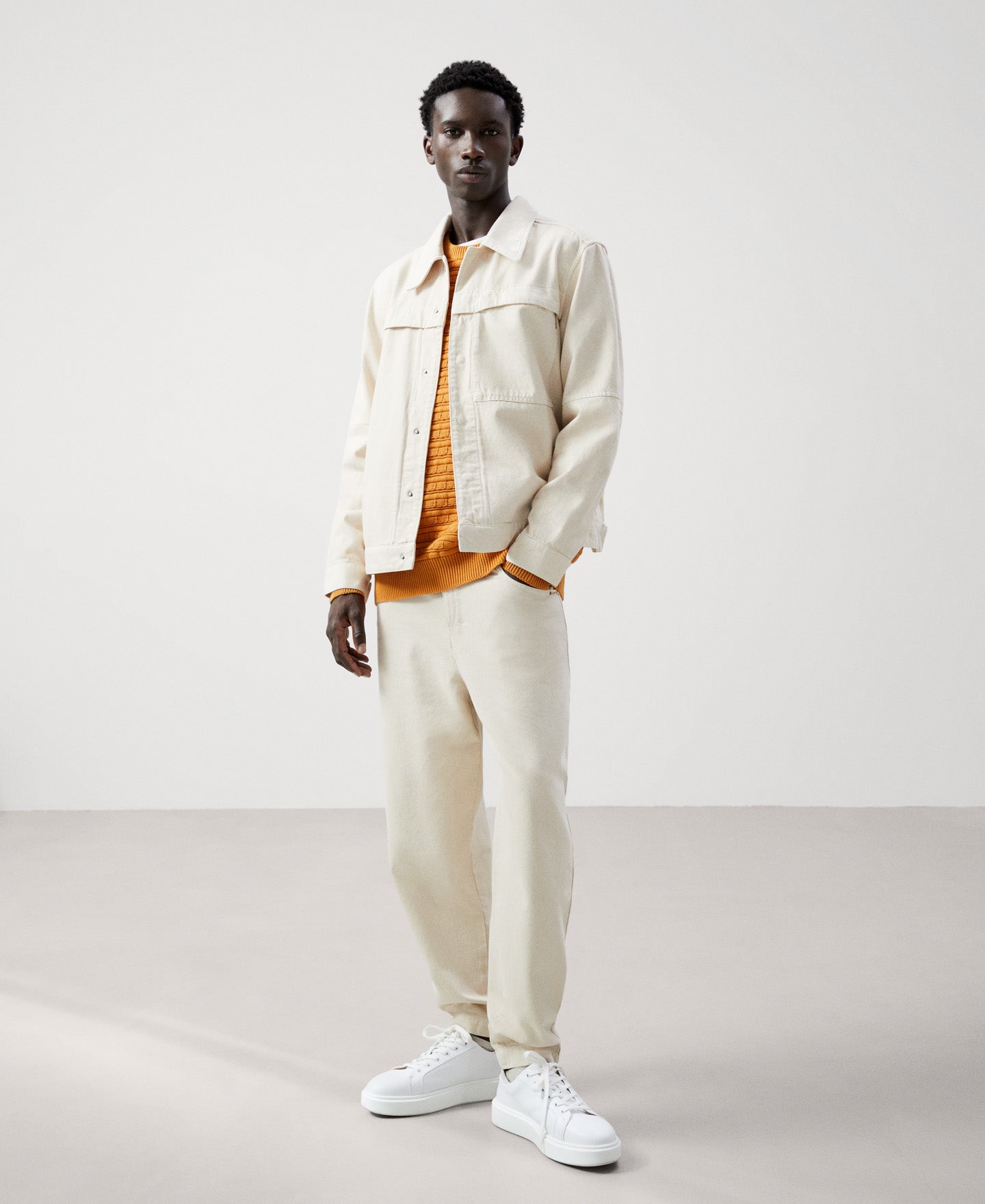 Cotton crew neck sweater. Long sleeves. Ribbed trims.