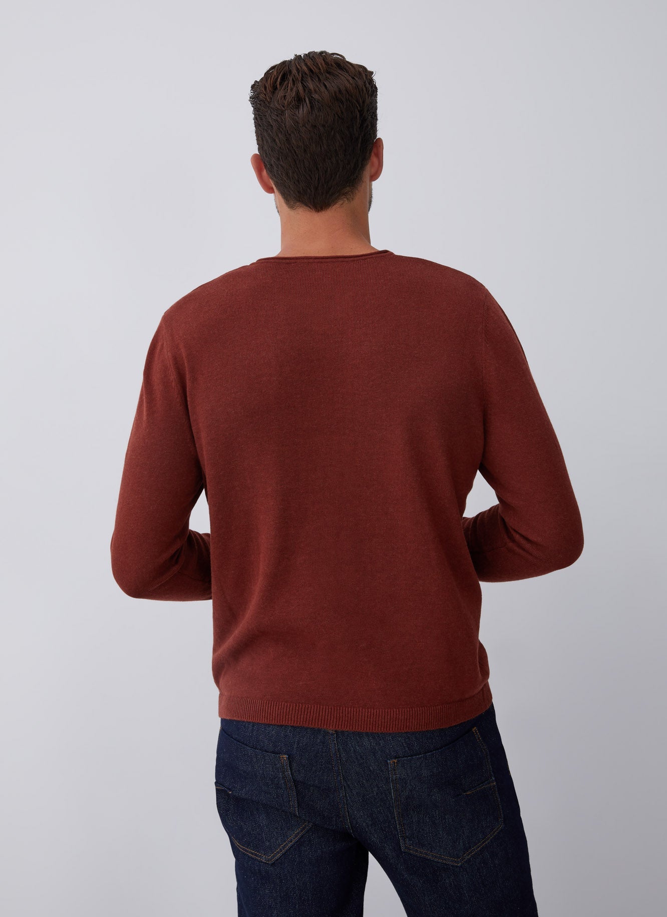 Knitted from a wool and cotton blend, this v-neckline sweater with chest logo is a classic design we repeat season after season. The roll edge collar is one of the staples of the brand. AD 100%.