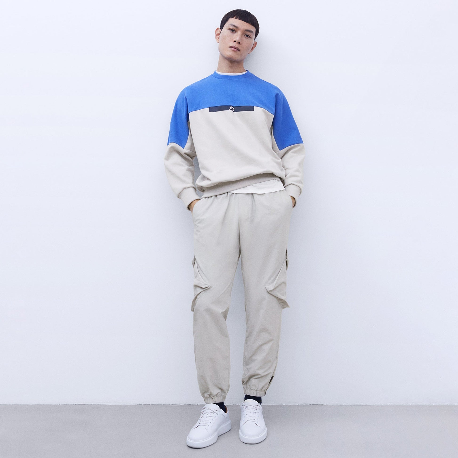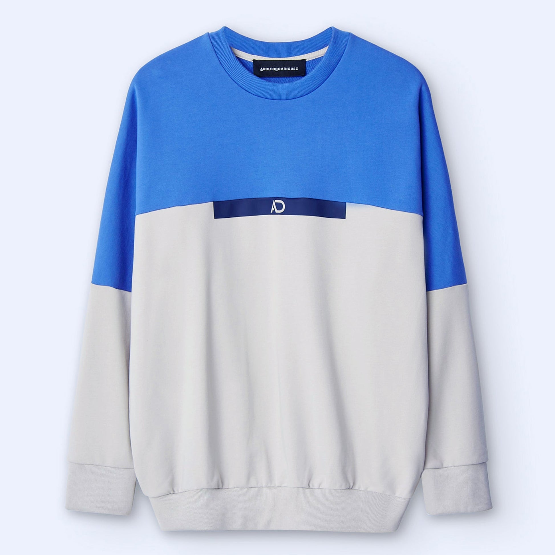 Stay comfortable and stylish with this two-tone cotton oversize sweatshirt from Adolfo Dominguez. It features a round collar and dropped sleeves for a relaxed fit. The ribbed trims add a touch of texture, while the logo on the chest adds a subtle branding detail. Made in Portugal, this sweatshirt is a perfect addition to your casual wardrobe.