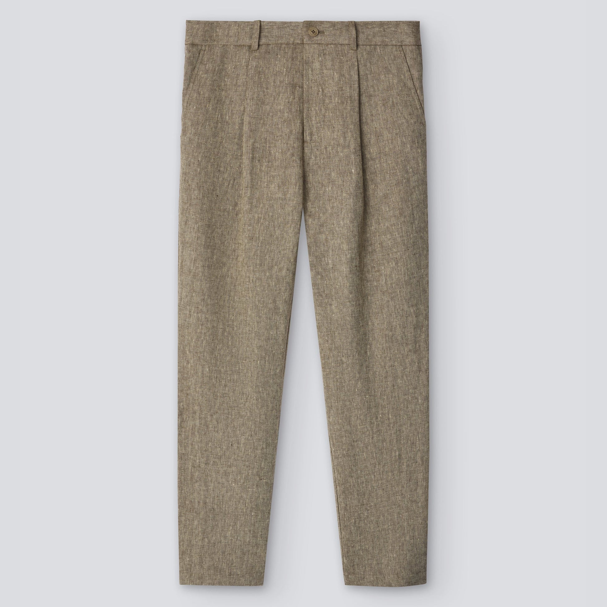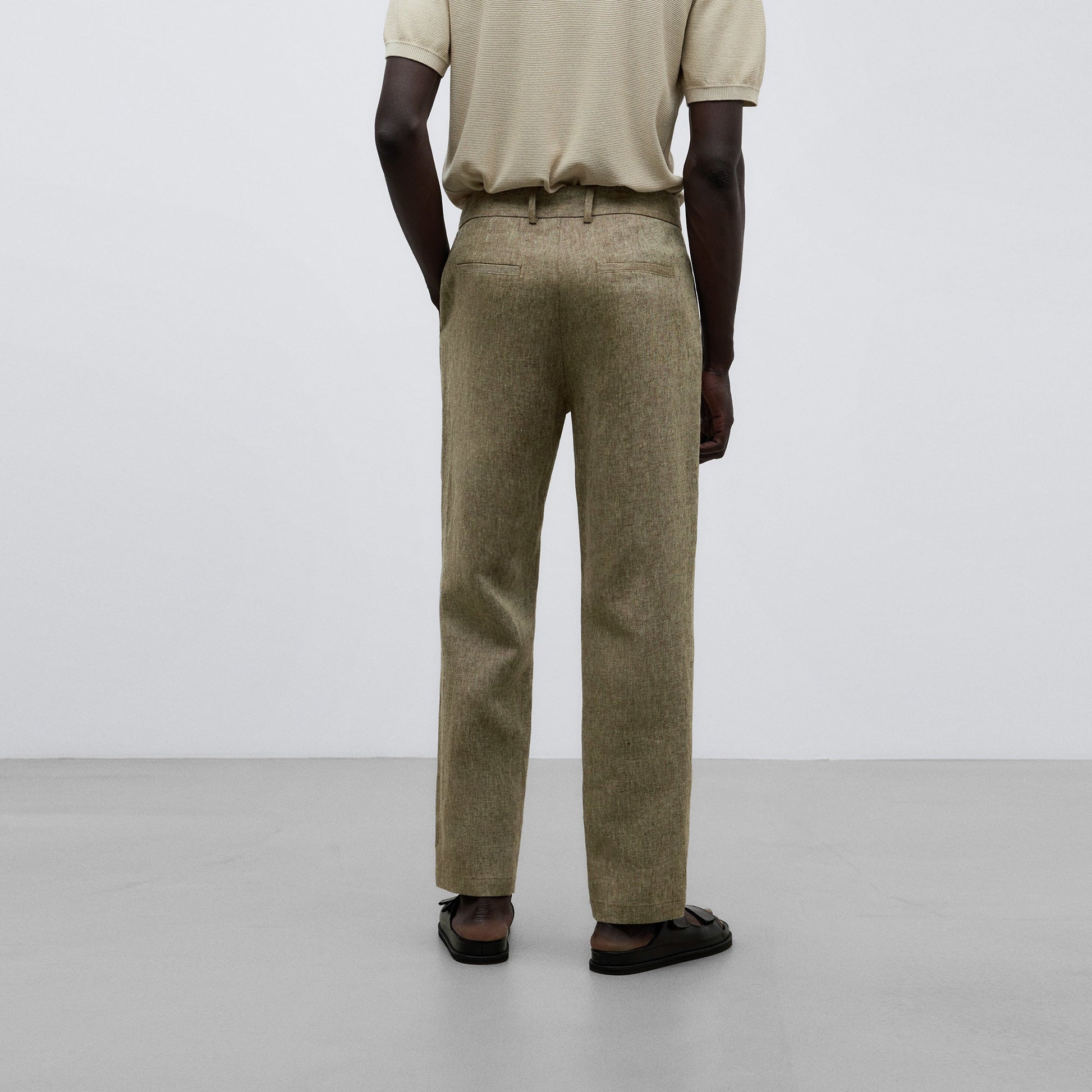 European Linen Tailored Trousers Man. Straight Leg. Pockets On Side. Trim Pockets On Back. Adjustable Strap With Button On Side.