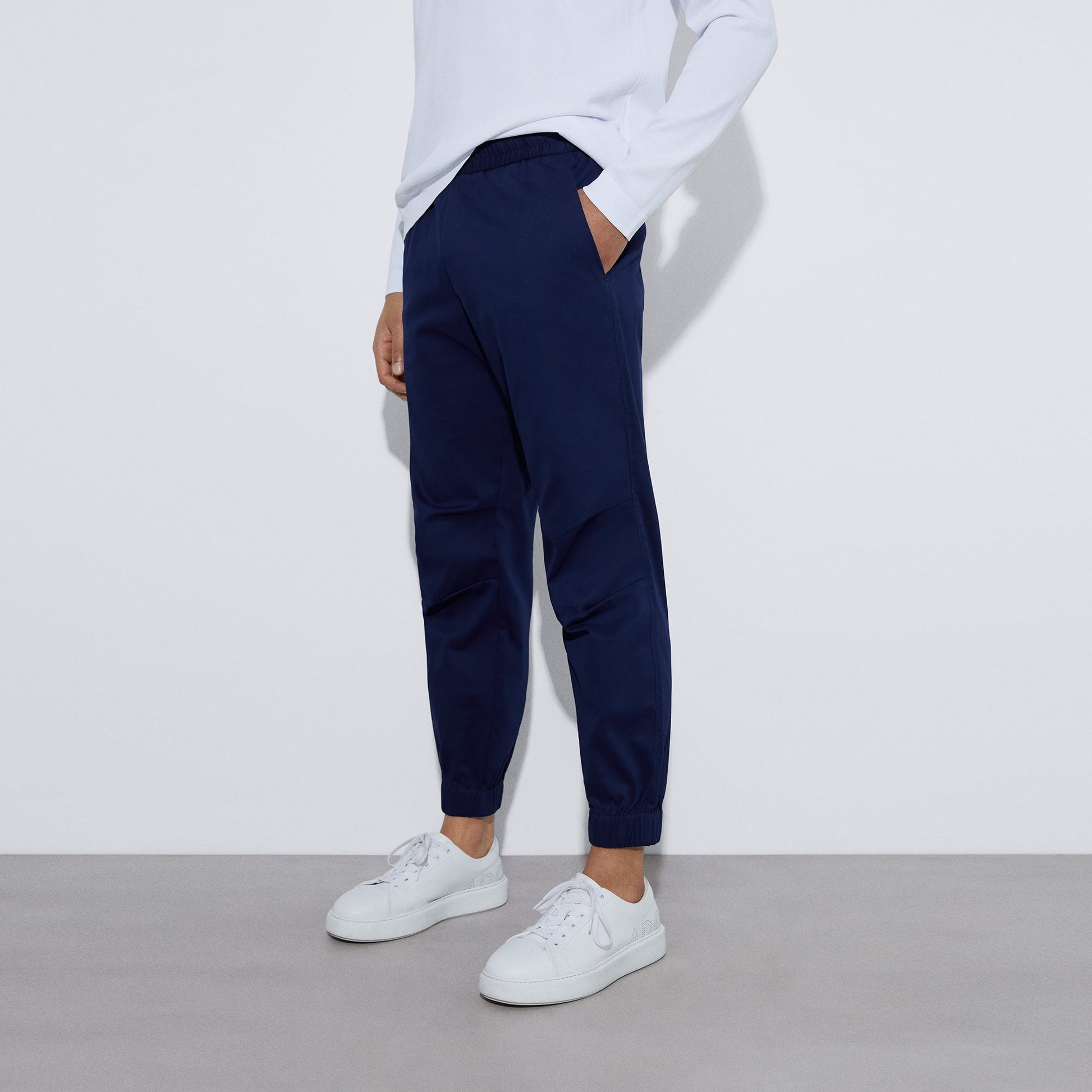 Cotton jogger pants. Elastic waist and hem and inner drawstring.Cotton Elastic Waistband Elastic At Bottom