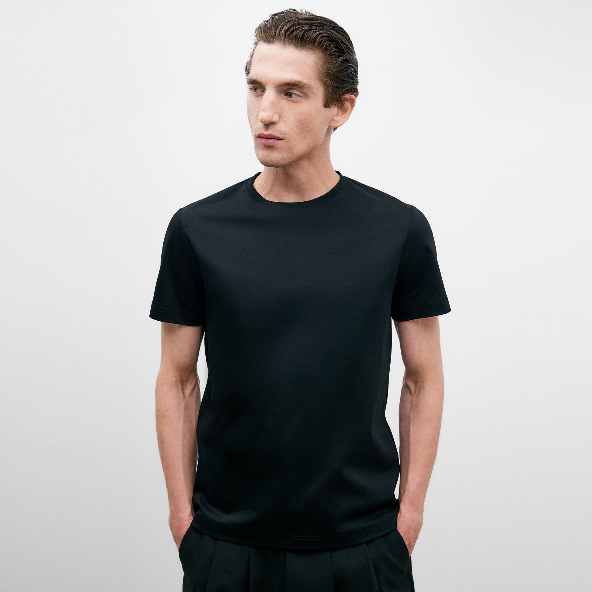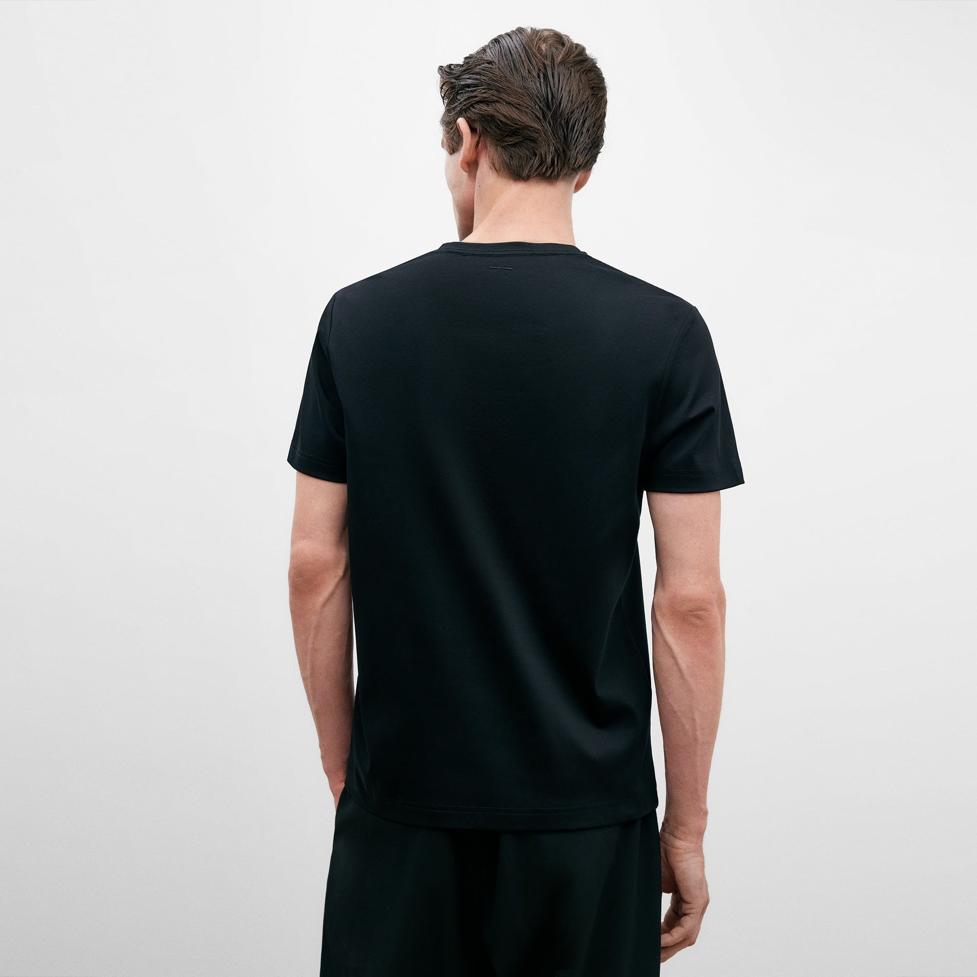 Description: Introducing our exquisite Black Cotton T-Shirt from Adolfo Dominguez. Crafted with utmost precision, this black t-shirt exudes timeless elegance. Designed with a classic crew neck and short sleeves, it offers a comfortable and stylish fit. The topstitching detail on the sleeves and hem adds a touch of sophistication. To elevate its allure, we have delicately embroidered our iconic logo on the back. Made from 100% cotton, this t-shirt ensures unparalleled comfort and breathability. Embrace luxury and make a statement with this impeccable black cotton t-shirt from Adolfo Dominguez.