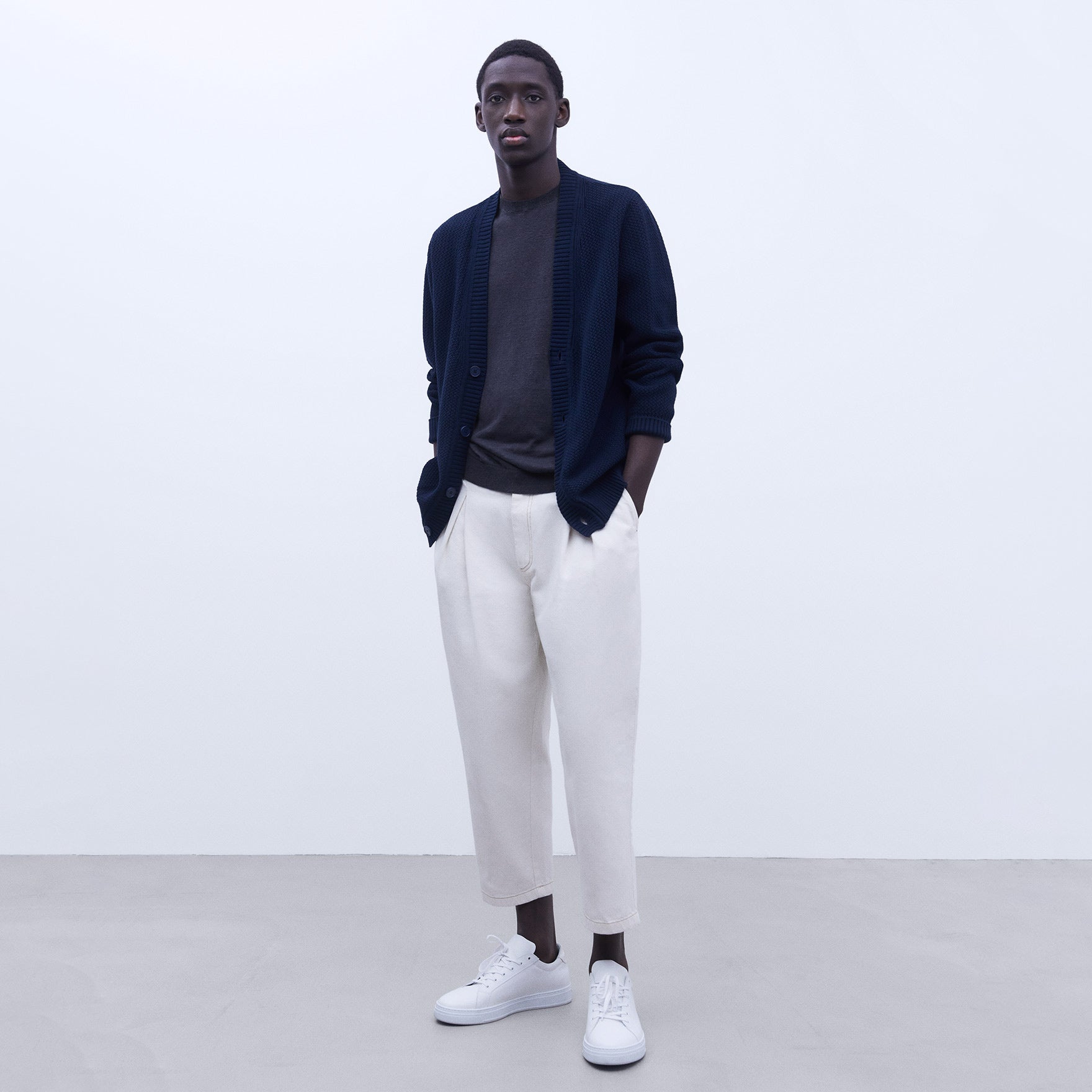 Ribbing on collar, sleeves and hem. Ribbed detail on sleeves.
