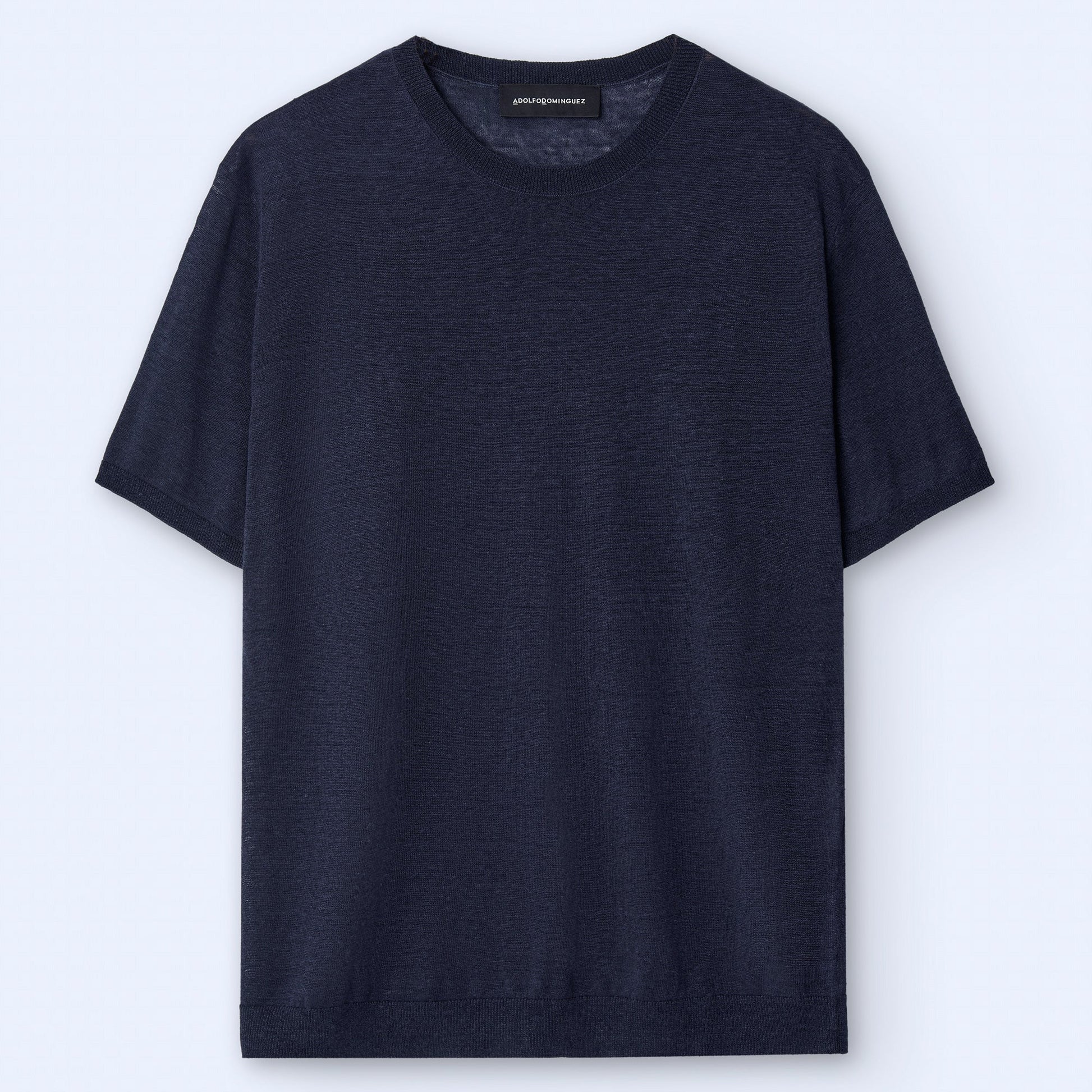 Prussian Blue Linen Blend Crew Neck Tee